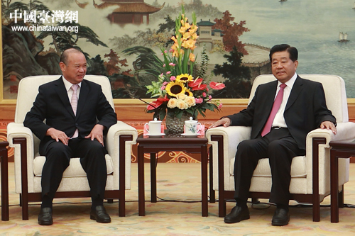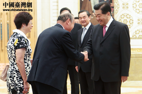 8月30日下午,中共中央政治局常委、全國政協(xié)主席賈慶林在人民大會堂會見了世界臺灣商會聯合總會參訪團全體成員。(中國臺灣網 陳佳慧 攝)
