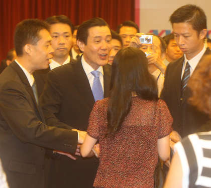 中國臺灣網9月6日消息 據臺灣媒體報道,臺灣地區領導人馬英九今出席臺灣《中學生報》創刊發表會,并發表講話。意外的是活動現場一位女粉絲看到馬英九太高興,沖上前去熊抱馬英九。(中國臺灣網 杜美瑩)