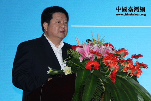農(nóng)業(yè)部總經(jīng)濟(jì)師、海峽兩岸農(nóng)業(yè)交流協(xié)會(huì)會(huì)長陳萌山在座談會(huì)上發(fā)表講話。(中國臺(tái)灣網(wǎng) 郭瑩瑩 攝)