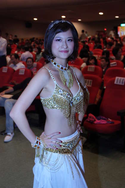 歐孟昀表演肚皮舞,曼妙舞姿吸引觀眾。(圖片來自臺媒)