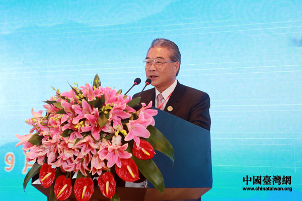 海峽兩岸企業家紫金山峰會19日上午9時在南京紫金山莊會議中心紫金廳舉行開幕式。臺灣工業總會理事長許勝雄出席了開幕式并演講。(中國臺灣網 王偉 攝)
