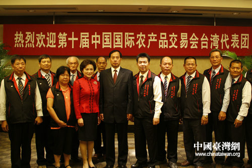農業部總經濟師、辦公廳主任陳萌山與第十屆農交會臺灣代表團合影留念。(中國臺灣網 郭瑩瑩 攝)