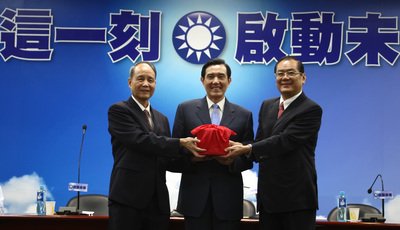 中國臺(tái)灣網(wǎng)9月27日消息 據(jù)臺(tái)灣“中央社”報(bào)道,身兼國民黨主席的馬英九27日出席黨秘書長交接儀式。在馬英九監(jiān)交下,新任國民黨秘書長曾永權(quán)自前任秘書長林中森手中接下印信。(中國臺(tái)灣網(wǎng) 杜美瑩)