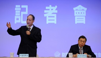 林中森正式上任為海基會(huì)董事長,右為海基會(huì)續(xù)任副董事長高孔廉。圖片來源:臺(tái)灣“中央社”