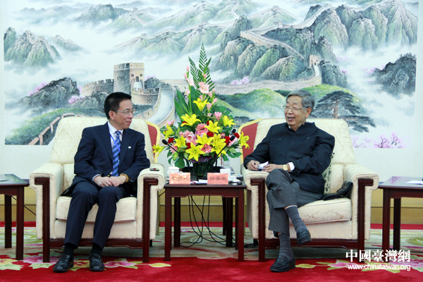 9月27日,中國和平統(tǒng)一促進(jìn)會名譽(yù)會長許嘉璐在京會見了以張維慶為團(tuán)長的奧地利中國和平統(tǒng)一促進(jìn)會訪問團(tuán)。中國和平統(tǒng)一促進(jìn)會執(zhí)行副秘書長杭元祥主持會見活動(dòng),副秘書長宋為參加。(中國臺灣網(wǎng) 王偉 攝)
