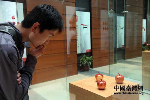 參觀檜木工藝品。(中國臺灣網 馬迪 攝)