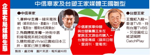 如果以“團購”方式成功收購臺灣壹傳媒,王、辜兩家將擁有臺灣的《蘋果日報》、《壹周刊》、壹電視(新聞臺和綜合臺、電影臺及體育臺四張執照、三個頻道)。此外,臺塑集團王永慶女兒王雪紅持有臺灣TVBS、臺灣威望國際CatchPlay;臺灣 “中信”辜家擁有緯來電視網(緯來綜合臺、戲劇臺、日本臺、電影臺、體育臺和育樂臺)、中嘉有線電視系統部分股權。辜、王兩家族如果能夠解開心結互相合作,其在數字媒體匯流產業內的實力應不容小覷。