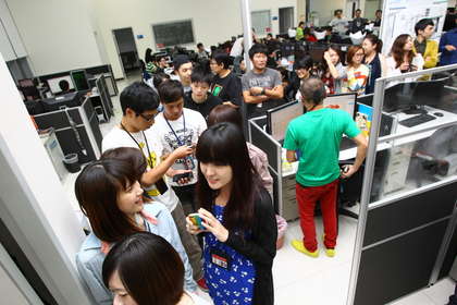 辦公室內外大排長龍等著黎智英簽名合照。圖片來源:臺灣媒體