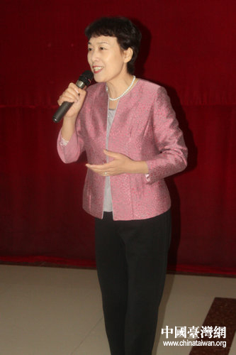 天津市臺辦主任周克麗女士即興演唱京劇《知音》。(中國臺灣網 郭瑩瑩 攝)