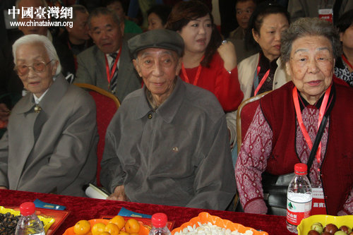 天津93歲老人任孝英(左)、92歲老人金錫佑(中)與來自臺灣90歲的王春英女士(右)是當天參加活動年齡最大的三位老人。(中國臺灣網 郭瑩瑩 攝) 第1頁第2頁第3頁
