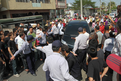 蘇治芬見群眾不理性隨即驅車離開,未料座車遭竟阻擋,經警方出面始得座車離開,此時黑衣人再度出面強行阻擋,致現場發生激烈沖突,蘇治芬座車遭猛踹,司機及隨扈遭拉扯,導致2人受傷。云林縣府強烈譴責暴力,要求警方依法究辦。