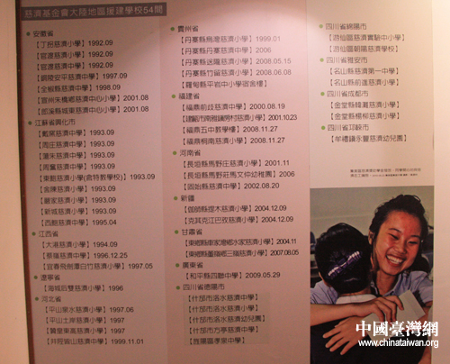 慈濟(jì)援建大陸的54學(xué)校列表(中國臺灣網(wǎng) 王文英 攝)
