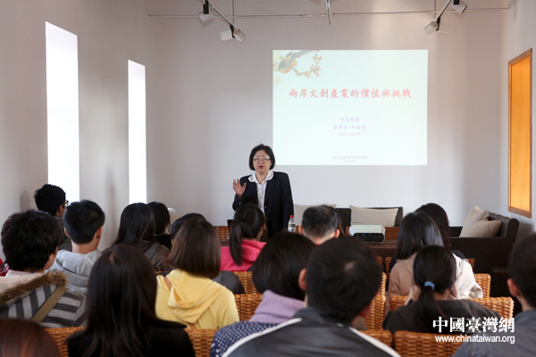 北京得意典藏公司董事長、臺商李瀚瑩女士為同學們舉行了題為《兩岸文創企業的價值與挑戰》的講座,以親身經歷為同學們在大陸工作和創業提供了寶貴的經驗。(中國臺灣網 普燕 攝)