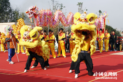 護駕陣頭在神農壇前擺陣致敬。(中國臺灣網 陳睿 攝)