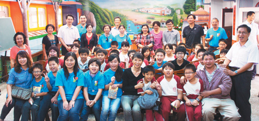 馬英九夫人周美青(中)到彰化縣二林鎮(zhèn)香田小學(xué)與小朋友分享故事,讓小朋友感到很開心。圖片來源:臺灣《聯(lián)合報》