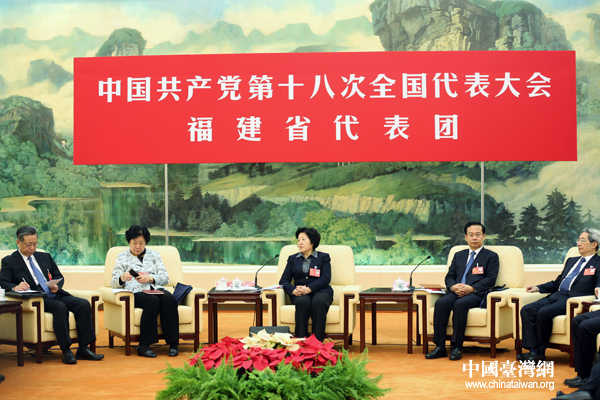 9日上午,中國共產(chǎn)黨第十八次全國代表大會福建省代表團(tuán)在人民大會堂福建廳討論十八大報告并對中外記者開放。討論結(jié)束后,部分代表還回答了記者的提問。 (中國臺灣網(wǎng) 王偉 攝)