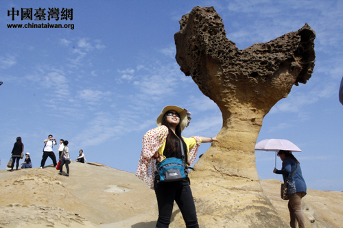 游客在野柳“怪石”拍照留念。 (中國臺灣網(wǎng) 于斯文 攝)