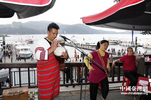 臺灣少數民族在日月潭湖畔載歌載舞。(中國臺灣網 于斯文 攝)