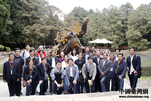 參訪團團在阿里山景區(qū)合影留念。(中國臺灣網(wǎng) 于斯文 攝)