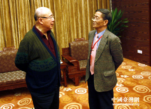 11月23日,中國國民黨榮譽主席吳伯雄在梅州會見蕉嶺籍大陸學者徐博東等,并與徐博東親切交談(中國臺灣網(wǎng)記者 蕪同 攝)