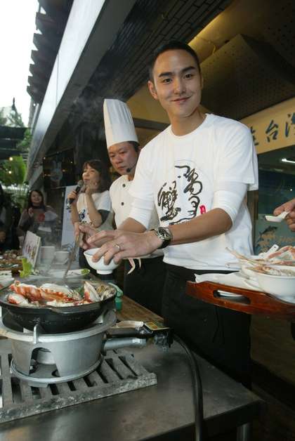 中國臺灣網11月24日消息 綜合臺灣媒體報道,目前在新北市服替代役的阮經天,今天上午到魚市幫新北市的萬里蟹作宣傳,現場還當起二廚,料理起萬里蟹供民眾品嘗,阮經天很擔心自己煮得不好吃,滿臉不好意思。