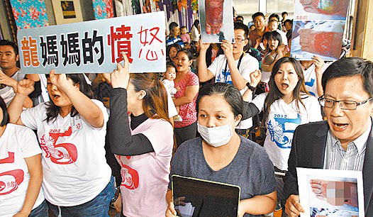 男嬰打點滴漏針致左腳潰爛,百名龍年得子的父母聲援抗議。圖片來自臺媒