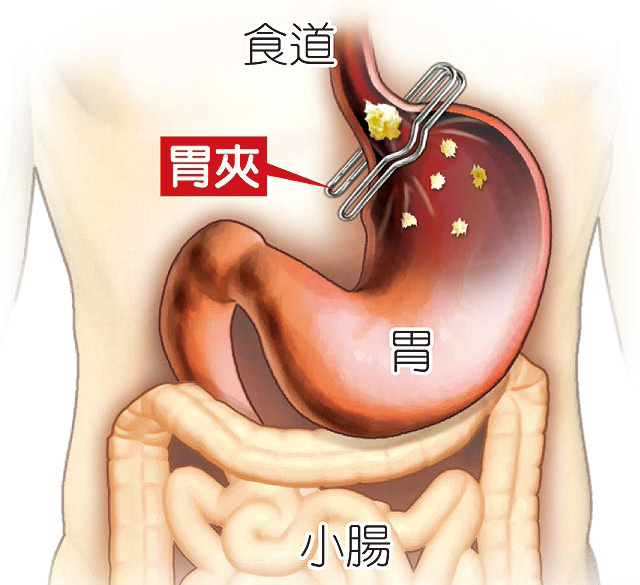 趙世晃指出,“胃夾”手術(shù)不用開(kāi)腹,是以腹腔鏡進(jìn)行,從左肋骨下方的開(kāi)口,將胃夾夾在胃外壁,縫4針固定,將胃部隔成上下兩胃囊,胃夾上突起約1公分直徑的孔道可供食物通過(guò)。