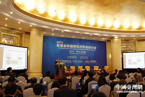 以“金磚2013:挑戰(zhàn)與機(jī)遇”為主題的首屆金磚國家經(jīng)濟(jì)形勢(shì)研討會(huì)今天下午在京舉行。(中國臺(tái)灣網(wǎng) 王偉 攝)