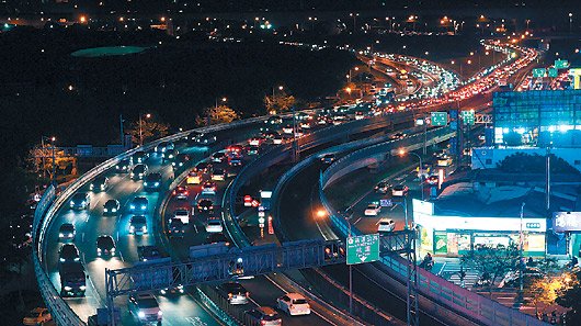 臺北市高架橋上行駛中的車輛(圖片來源:臺灣媒體)