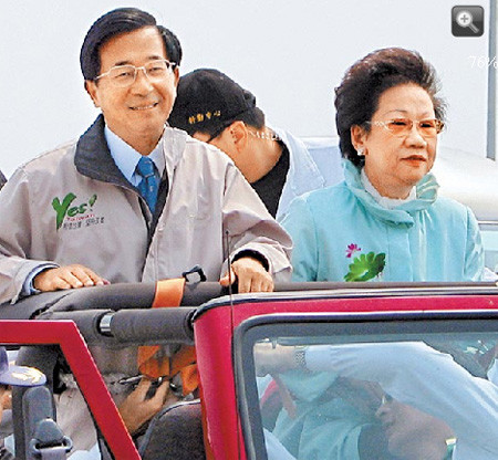 2004年臺(tái)灣地區(qū)領(lǐng)導(dǎo)人選舉期間,陳水扁與呂秀蓮拉選票(資料圖)