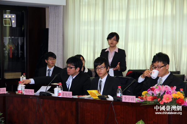 民革青年黨員代表趙龍與“杰青團(tuán)”同學(xué)互相交流意見。(中國臺(tái)灣網(wǎng) 芮益芳 攝)