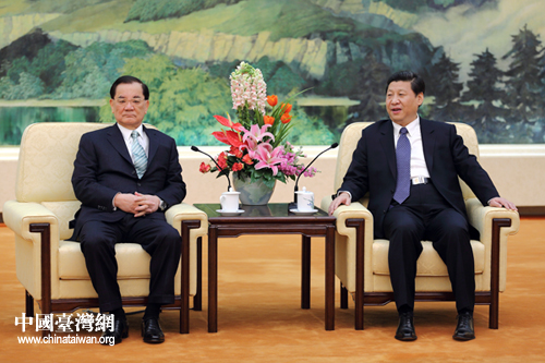 2月25日上午,中共中央總書記習近平在人民大會堂會見了中國國民黨榮譽主席連戰一行。(中國臺灣網 陳佳慧 攝)