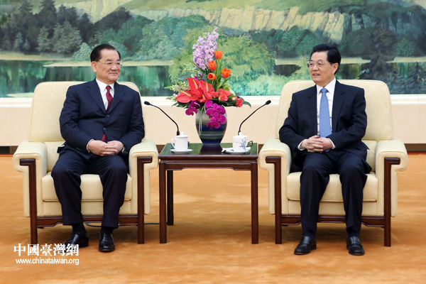 2月26日上午,國家主席胡錦濤在北京人民大會堂會見了中國國民黨榮譽主席連戰(zhàn)一行。(中國臺灣網 陳佳慧 攝)