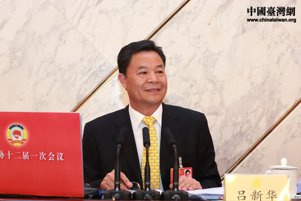 3月2日下午,全國政協十二屆一次會議新聞發布會在北京人民大會堂新聞發布廳舉行,大會發言人呂新華介紹會議情況,并回答記者的提問。圖為大會發言人呂新華。(中國臺灣網 于斯文 攝)