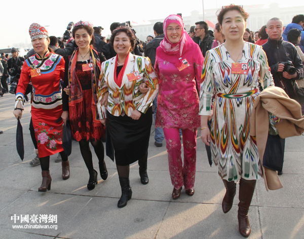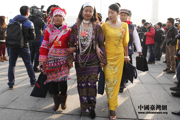 少數(shù)民族人大代表步入會場。(中國臺灣網(wǎng) 何建峰 攝)