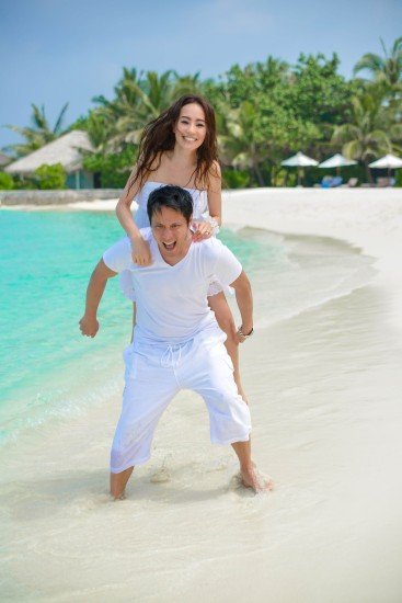 關穎和未婚夫CHRISTIAN前往馬爾代夫勝地,預支蜜月及拍攝婚紗。(圖片來自臺媒)