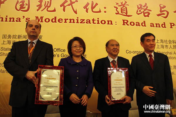 中國臺灣網3月24日上海消息 以“中國現代化:道路與前景”為主題的第五屆世界中國學論壇23日在上海開幕。開幕式上,上海市人民政府副市長翁鐵慧揭曉了第二屆“世界中國學貢獻獎”,該獎項的獲得者是:俄羅斯科學院院士、俄羅斯前特命全權駐華大使齊赫文斯基,美國費正清研究中心前主任傅高義和香港中文大學中文系榮休講座教授饒宗頤。
