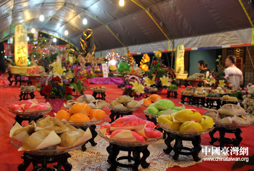 宴王祭典上的果雕(中國臺灣網 李典典 攝)