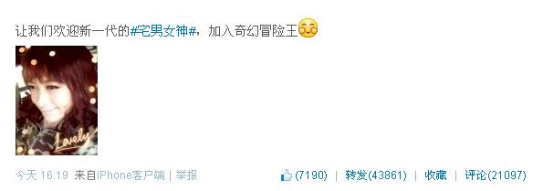 中國臺灣網4月19日消息 正在橫店拍攝新劇《奇幻冒險王》的林志穎常在微博分享各種拍戲趣事。今天(19日)下午4點,林志穎在微博引薦一位劇組“新成員”,并封之為新一代的“宅男女神”,引發粉絲瘋轉。