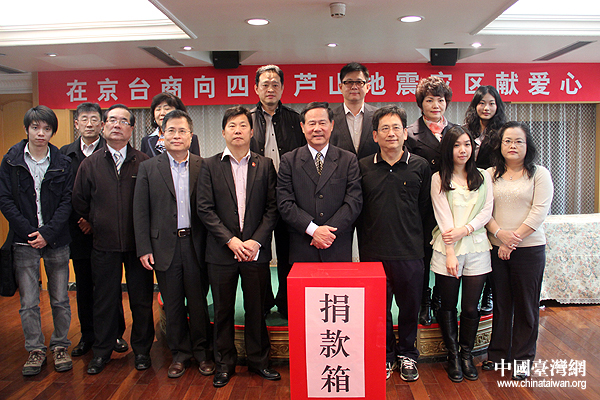 北京市臺資企業(yè)協(xié)會23日上午舉行獻(xiàn)愛心活動,向四川蘆山地震災(zāi)區(qū)的同胞捐贈救災(zāi)款項。(中國臺灣網(wǎng) 楊麗 攝)