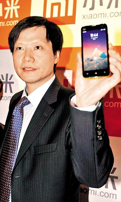 小米手機24日正式進軍臺灣市場,圖為董事長雷軍展示小米手機。(資料圖)