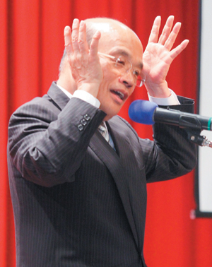 民進黨主席蘇貞昌回答學生提問。(來源;臺灣《聯合報》)
