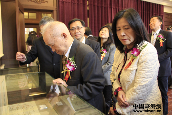 “林獻堂抗日事跡陳列館”暨北京五桂樓會館開館儀式4月28日在北京臺灣街五桂樓舉行。梁啟超之子梁思禮、林獻堂孫媳林芳媖瞻仰先人遺物。(中國臺灣網 何建峰 攝)