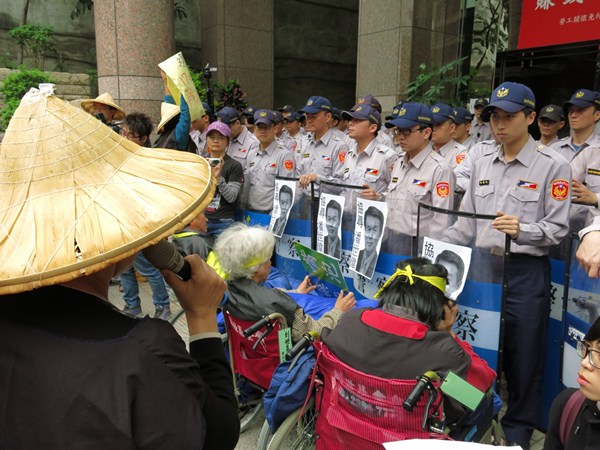輪椅大隊呼吁將資遣費跟退休金納入基金最優先清償范圍。(圖片來自臺媒)
