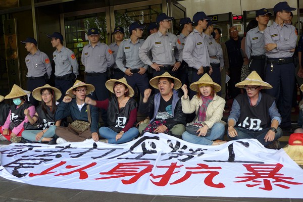 在臺“勞委會”前靜坐的關廠工人絕食進入115小時,一名靜坐者體力不支送醫。(圖片來自臺媒)