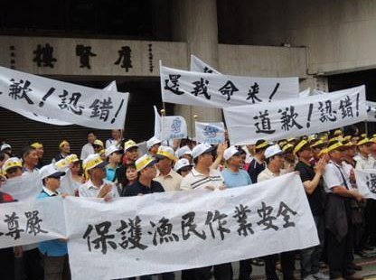 400多名臺(tái)灣漁民13日下午要求菲律賓對(duì)漁民被殺事件負(fù)責(zé)。(來(lái)源:臺(tái)灣“今日新聞網(wǎng)”)