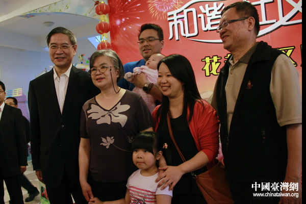 中臺辦、國臺辦主任張志軍應邀與花都社區的臺胞一家合影。(中國臺灣網 楊麗 攝)