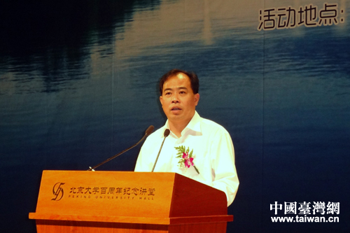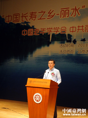 今天上午,中國老年學學會與浙江省麗水市委、市政府在北京舉行“中國長壽之鄉—麗水”授牌儀式暨新聞發布會,中國老年學學會正式授予麗水為“中國長壽之鄉”。圖為浙江省政府副省長盧子躍講話。(中國臺灣網 王偉 攝)
