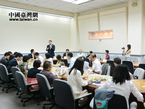 參訪團(tuán)成員與TVBS電視臺(tái)高層領(lǐng)導(dǎo)進(jìn)行座談。(中國(guó)臺(tái)灣網(wǎng) 許秋玥 攝)