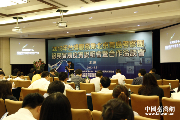 5月31日下午,由12家臺灣的服務(wù)業(yè)廠商組成的考察團(tuán)來京考察,了解大陸的服務(wù)業(yè)投資環(huán)境、優(yōu)惠條件等情況,并進(jìn)行洽談。(中國臺灣網(wǎng) 楊麗 攝)
